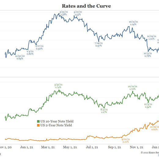Markets have become so accustomed to the Fed put that it’s assumed we will all be rescued so swiftly again. The truth is it’s a lot murkier this go around. The Fed is stuck between a rock and a hard place - trying to fight rampant inflation on one hand and an economy grinding to a halt on the other. Up until a few weeks ago the market was pricing in seven rate hikes for 2022 and even a chance for 50 bps in the upcoming March FOMC meeting. Obviously that’s coming down rapidly - under five today and looking like it will collapse further.