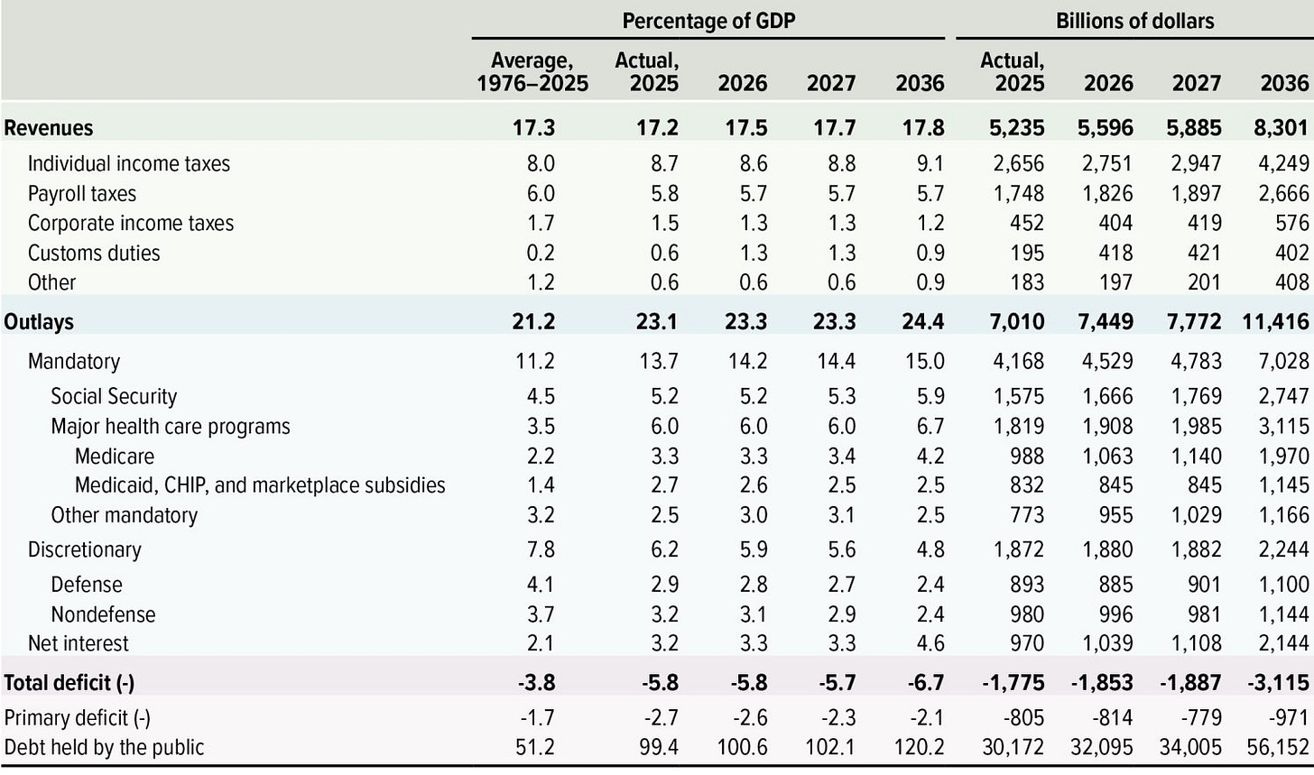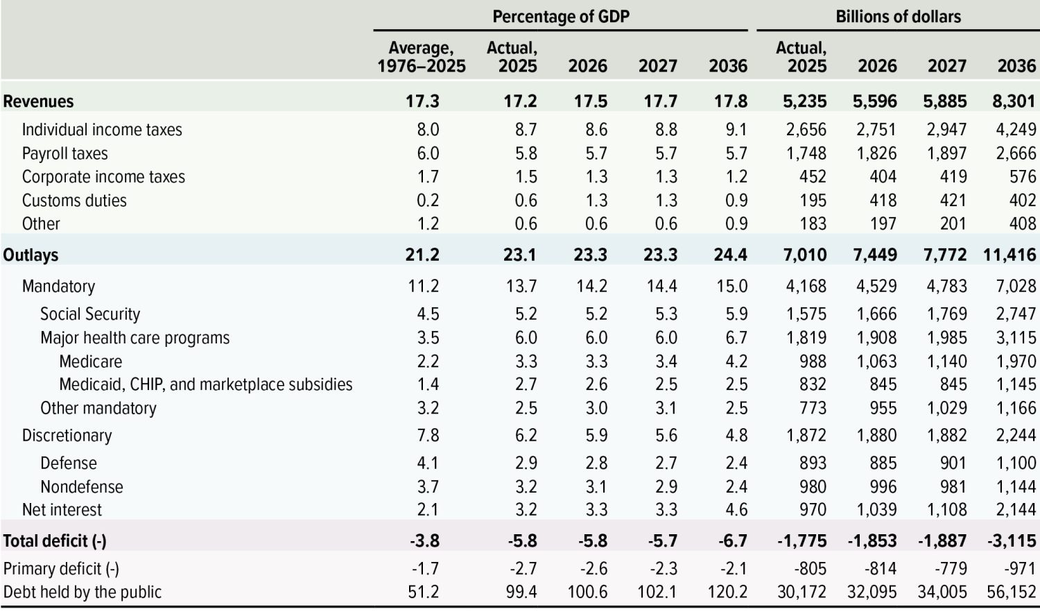 In the short-term assets trade off sentiment and flows, in the long-term they trade off fundamentals. What’s changed? Sentiment has turned fearful as AI advancements have created new risks of mass labor displacement leading to layoffs. We also have the Fed resuming $500B per year in balance sheet expansion to support the sovereign bond market alongside a recent QRA hinting at coordination with the Treasury to further alleviate long duration pressures. Long-term, the picture has not changed and the deficits are still not in check. The recent updated CBO forecasts are still showing consistent 5.5-6.0% deficits with no end in sight. If anything, job losses make matters worse as the government collects less income and capital gains tax revenues. The picture is bleak and owning bonds will not save you. Gold is the new risk off safe haven.