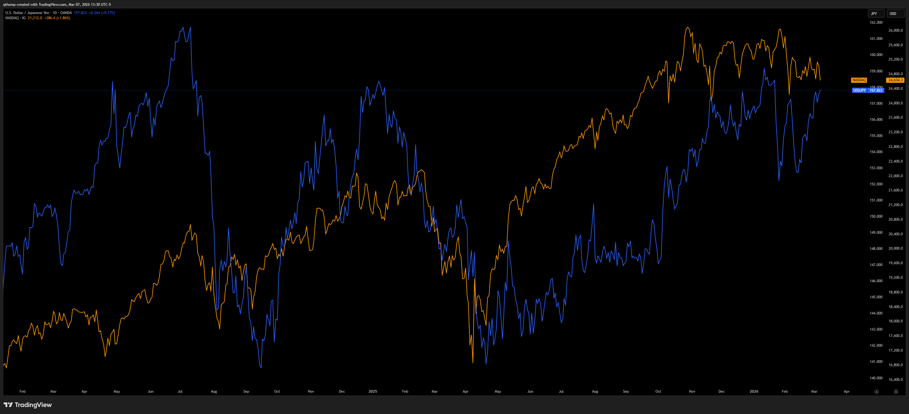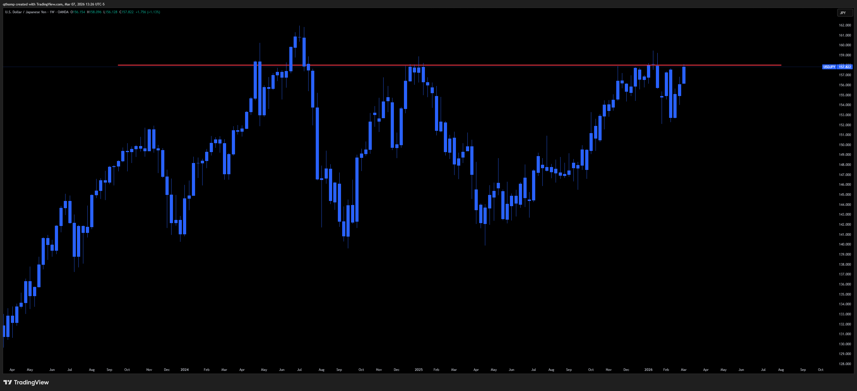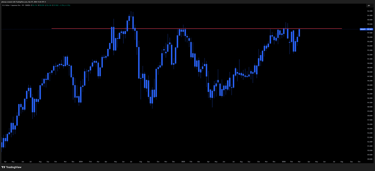 The Yen is back to its ~158 level that has been defended on numerous occasions over the past few years.