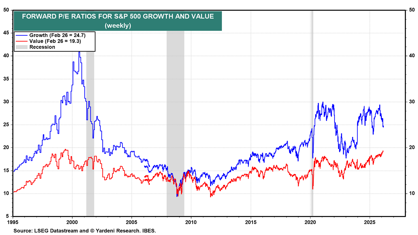 With all the talk of the AI and tech bubble, value forward P/E ratios are the highest since 1999!