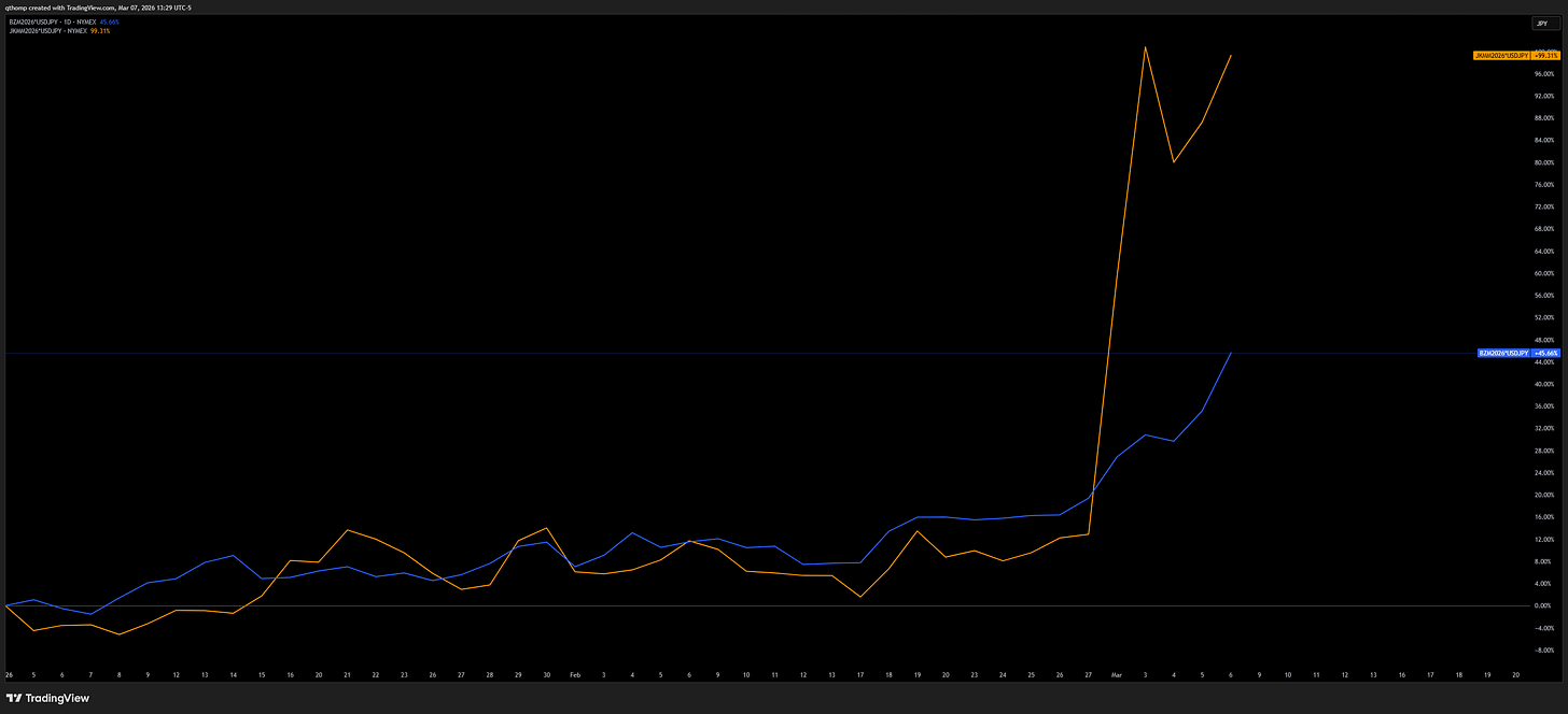 Domestic inflation in Japan is already likely to be a problem - June delivery of natural gas and oil are +100% and +45% YTD, respectively. Continued weakening of the yen only makes this problem worse.